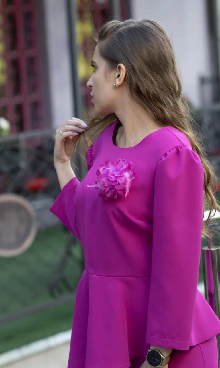 Wyjątkowy komplet damski w intensywnym kolorze fuksji. W zestawie znajduje się: