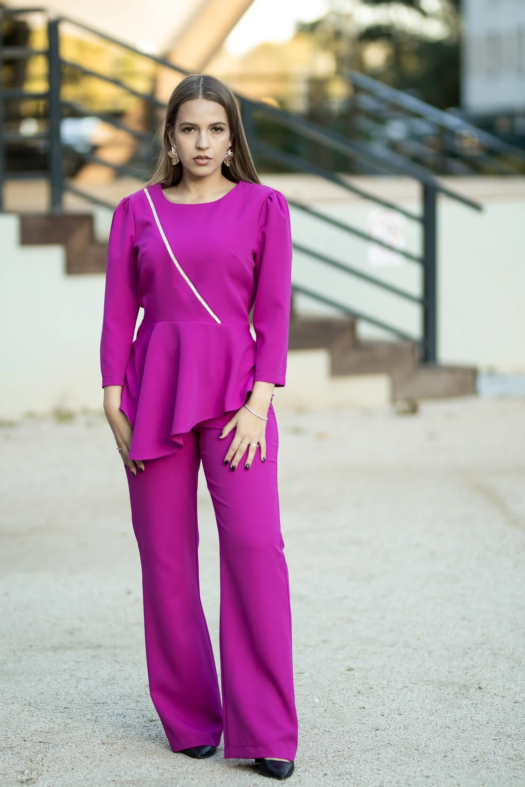 Komplet idealny na uroczystości rodzinne, eleganckie przyjęcia, spotkania biznesowe czy inne wyjątkowe okazje. Pięknie podkreśla sylwetkę i zwraca uwagę dzięki intensywnemu kolorowi.